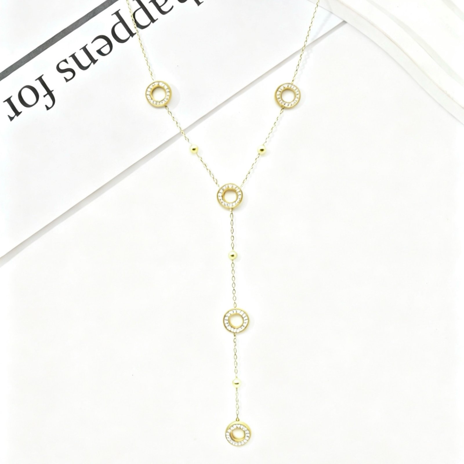 Laat je outfit sprankelen met deze prachtige cirkel ketting met strass-steentjes. De glinsterende strass geeft een subtiele, luxueuze touch, terwijl de ronde cirkelvorm een tijdloze en elegante uitstraling biedt. Perfect om elke look moeiteloos te upgraden, van casual tot chic.