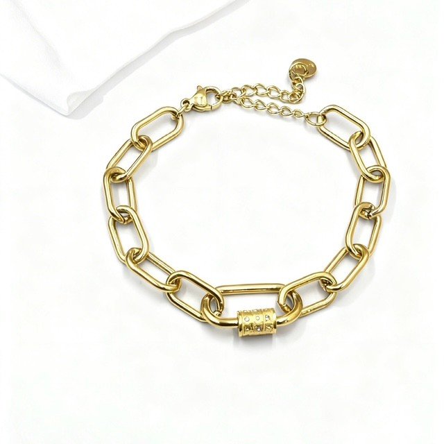 Geef je look een moderne en stijlvolle upgrade met deze clip schakel armband. Het strakke design met langwerpige schakels zorgt voor een minimalistische, maar toch opvallende uitstraling.