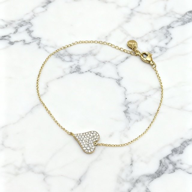 Voeg een romantische en sprankelende touch toe aan je look met deze elegante armband met strass steentjes in een hart. Dit verfijnde sieraad combineert een liefdevolle boodschap met een subtiele, luxe glans.