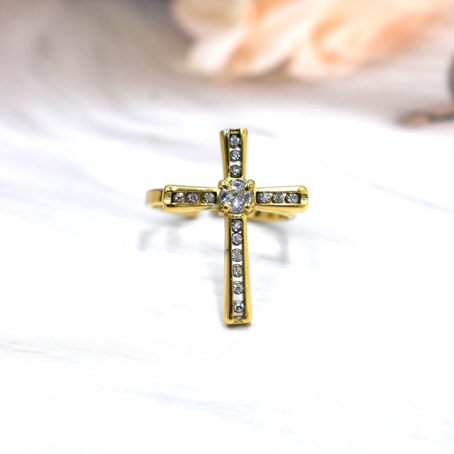 Deze ring met kruisdesign is een stijlvol en betekenisvol sieraad met een moderne uitstraling. De fonkelende strassstenen zorgen voor een elegante sparkle die het ontwerp extra laat opvallen. Het subtiele maar krachtige design maakt de ring perfect om dagelijks te dragen. Een trendy accessoire dat moeiteloos te combineren is met elke look.
