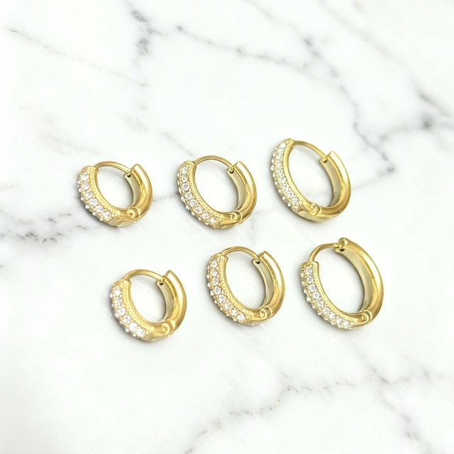 Deze basic set van drie soorten grote oorringen met strass steentjes is perfect om samen te dragen of elk apart voor een subtiele en veelzijdige look. Stijlvol, tijdloos en ideaal om te mixen en matchen met andere oorbellen.
