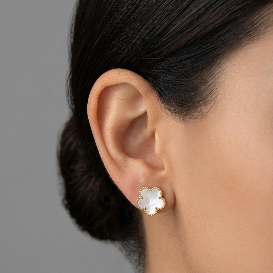 Voeg een zachte en verfijnde touch toe aan je look met deze prachtige parelmoer bloemetjes oorbellen. Het delicate bloemdesign gecombineerd met de subtiele glans van parelmoer zorgt voor een elegante en tijdloze uitstraling.